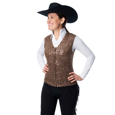 With her flattering shape, earthly tones, and classy matte sequins, the Dolly Show Vest makes style easy! 95% Polyester/5% Spandex
