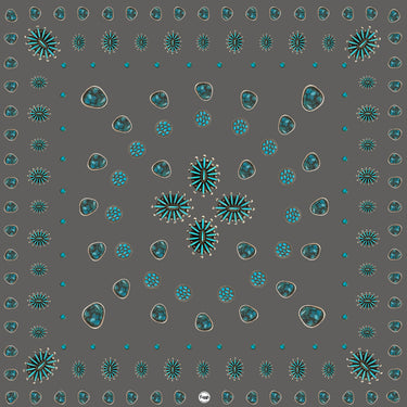 For those that have a love for all things turquoise, this Long Tall 12mm Satin Silk is for you! Turquoise adorned scarf with contrasting solid background. This one grabs your attention, and easily replaces a necklace.