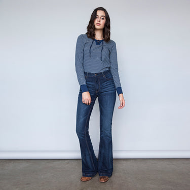 She is here! High rise flare bottom with 70's feel!Fabric: 99% Cotton 1% SpandexFit: Ultra High Rise. Super Wide Flare Leg.