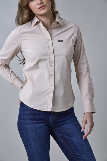 Ladies Long Sleeve Woven Solid Shirt in Moisture Wicking Coolmax Fabric, Classic Styling Button Front with Single Pocket, Rinse Wash