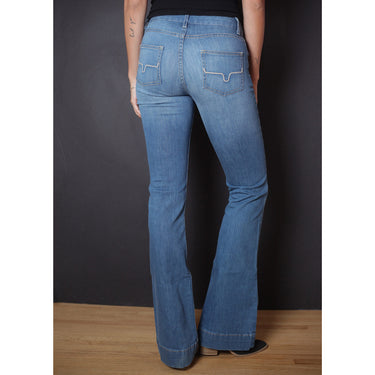 Mid-rise, trouser fit, wide flare leg. Cotton/polyester/elastine. Women's even sizes 0-16 with 32" (S), 34" (R), 36" (L), inseam. Item will ship separately.
