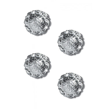 Classic scalloped 3/4" conchos backed by strong magnets hold your show number beautifully in place. Set of four.
