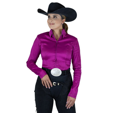 Terrific Taffy is a versatile blouse in the show pen. In a rainbow of fashion colors, gorgeous fabric that both shines and stretches, and a comfortable fit that flatters every body, Taffy's got it all. Reflective two-tone taffeta fabric is crisp with an elegant shen. Wear alone with simple or fancy jewelry or layer Taffy under your favorite vests; can be decorated with crystals and applique' too! Polyester/nylon/spandex, hand wash. Made in the USA.