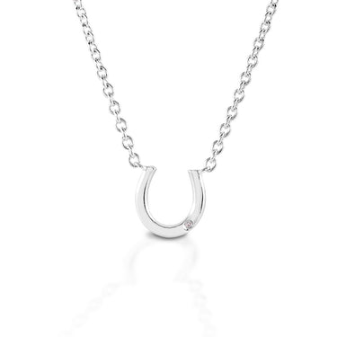 Modern and clean, the Kelly Herd Single Stone Horseshoe Necklace features a stylized sterling silver horseshoe with a small off set CZ stone. Adjustable 16-18" chain.