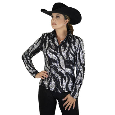 The Toni Jacket has a black stretch base with contrasting mini black sequins and bold textured metallic piette sequins! Gussets in the sleeves and armpits provide for extra stretch and ventilation just where you need it. Also comes in girl’s sizes. Polyester/Spandex, hand wash. Made in the USA.