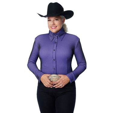 Perfect for all day wear in just about any event! Stretchy pinstriped fabric with darts give a custom looking fit. Added details like buttoned cuffs, high collar, zip front with faux button cover complete with added tiny snaps to hold it in place, and built in shoulder pads, all make this a ready-to-win look! If between sizes, size down for more fitted look.59% Nylon, 28% Polyester, 13% Spandex