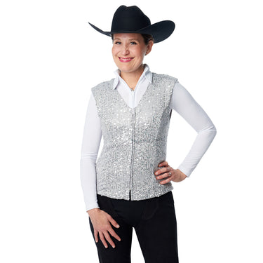 With her flattering shape, earthly tones, and classy matte sequins, the Dolly Show Vest makes style easy! 95% Polyester/5% Spandex