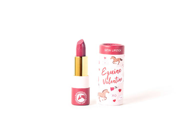 Who needs a boyfriend when you have a horse? Equine Valentine is a bright strawberry pink with a creamy satin finish we just know you will love. This lipstick wears great and won't feather or bleed.