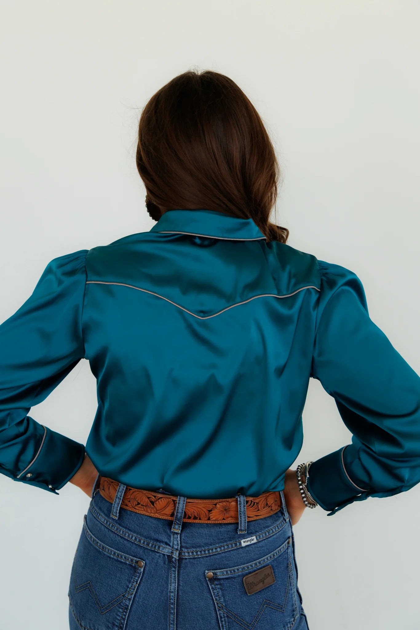 Pearl Snap Teal Satin Shirt