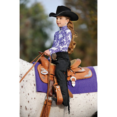 Simplicity chaps combine our best chap features in a budget-priced package. Made on Hobby Horse's world-famous chap patterns, these elegant chaps have a two-button waist, silver tone front buckle, and quality brass zippers - with our elastic stretch panel down the inside zipper for extra ease and comfort. Styled with a cuffless bottom, Simplicity chaps can be cut to shorten them, or sew on the overlay cuffs (included) for extra length. Machine washable HobbySuede is strong but drapes well for a close fit. Exceptional value. Also in Adult and Youth sizes.