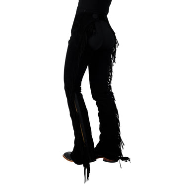 Hobby Horse classic split leather chaps are designed to fit women and men! We've taken our best-selling split leather fringed chaps and added an almost-invisible strip of sturdy elastic down the leg zipper. Whether you've gained a few pounds since the last show, sport 'classic curves' or are simply looking for greater comfort in leather chaps, this technology is for you!